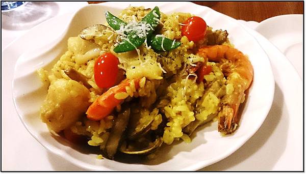 這燉飯從顏色看起來就很有味道,嚐來有像咖哩的香氣。