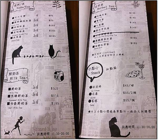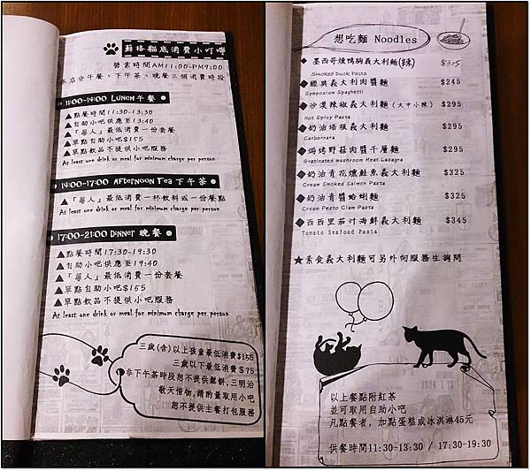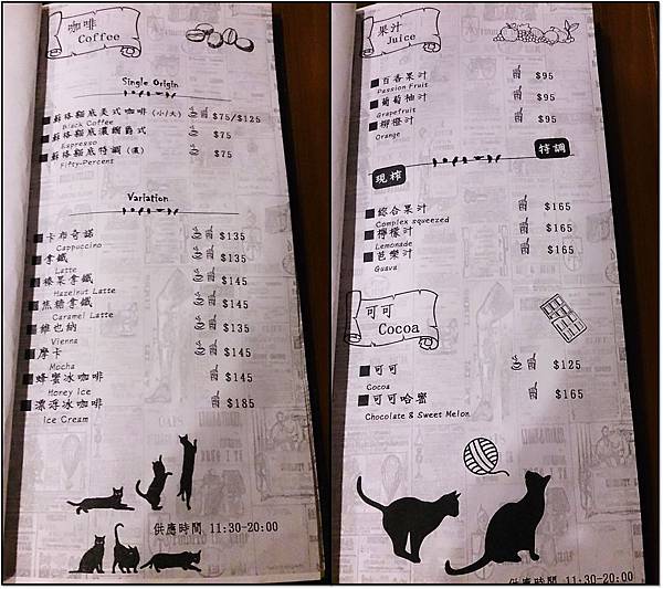 拍完整本菜單發現每一頁的貓咪都不一樣耶! 感覺得到編排的用心。