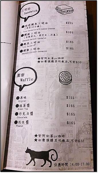 若是下午前來可以直接參考這一頁,三明治和鬆餅搭配飲品的組合也只有下午茶時段提供。